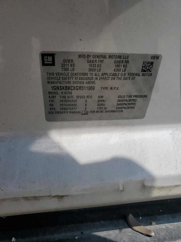 2016 CHEVROLET TAHOE - 1GNSKBKCXGR311969, колір - Білий, 5.3, Бензин, 4x4 з заднім приводом із США