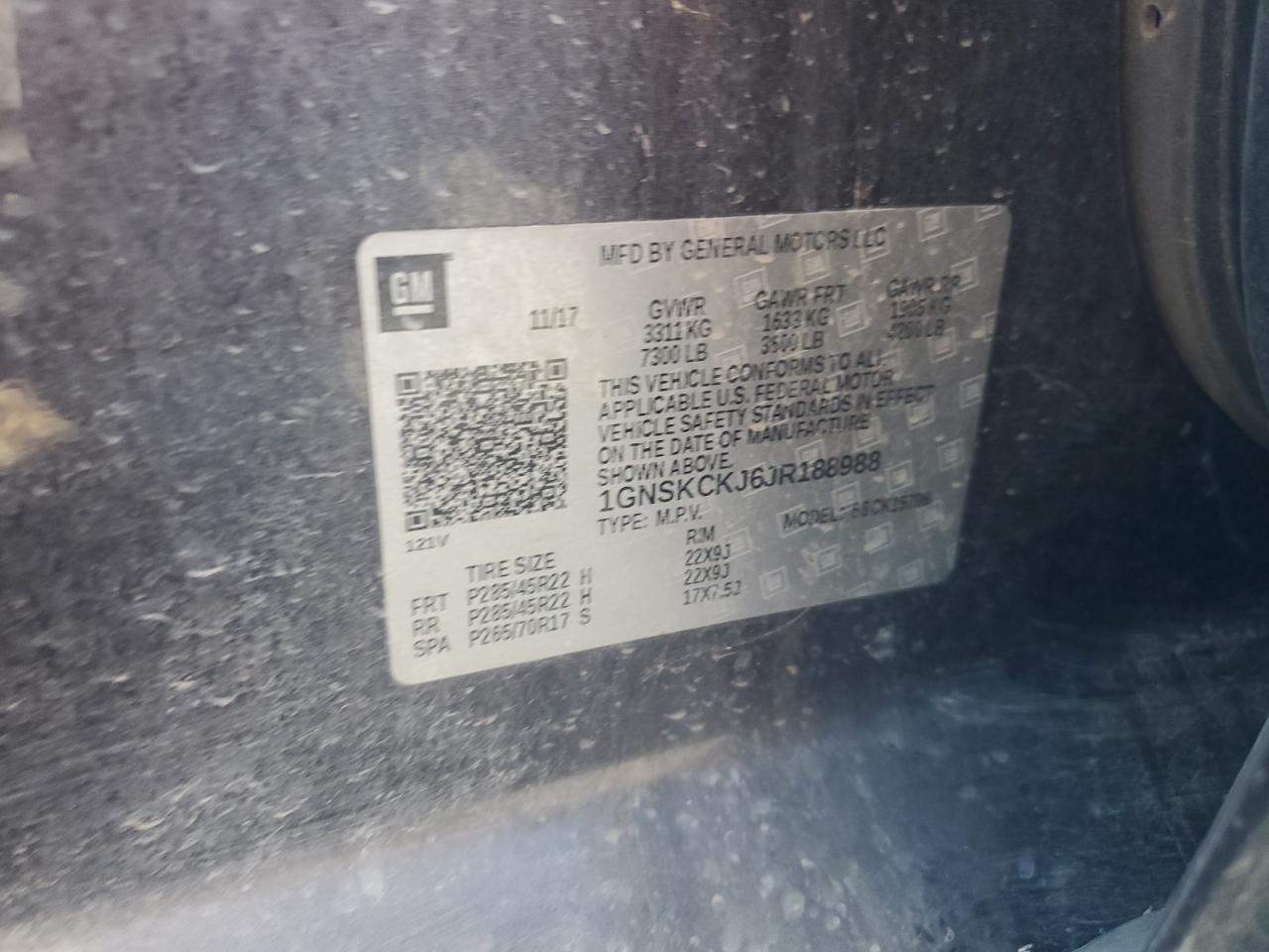 Колір ЧорнийЦиліндри 8Привід 4x4 з заднім приводомVIN 1GNSKCKJ6JR188988Стан НевідомоУшкодження НизДата аукціона 2025-10-07