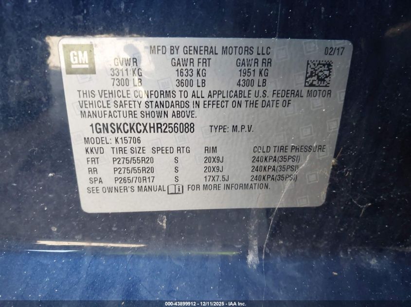 Колір ЧорнийЦиліндри 8Привід Повний привідVIN 1GNSKCKCXHR256088Стан Заводиться та їде (перевірено)Ушкодження Незначні