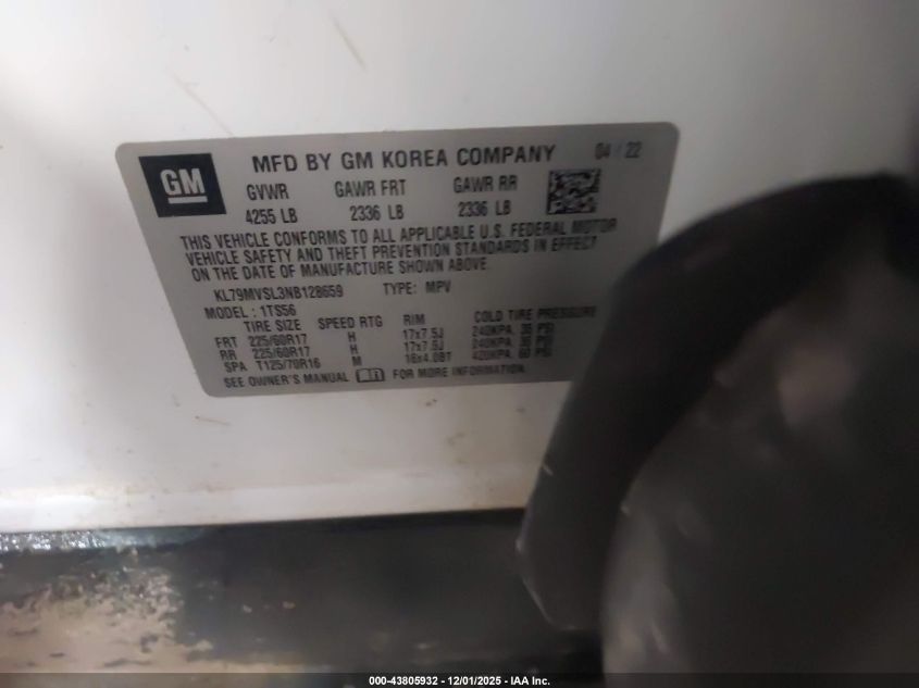 2022 CHEVROLET TRAILBLAZER - KL79MVSL3NB128659, колір - Білий, 1.3, Бензин, Передній привід із США