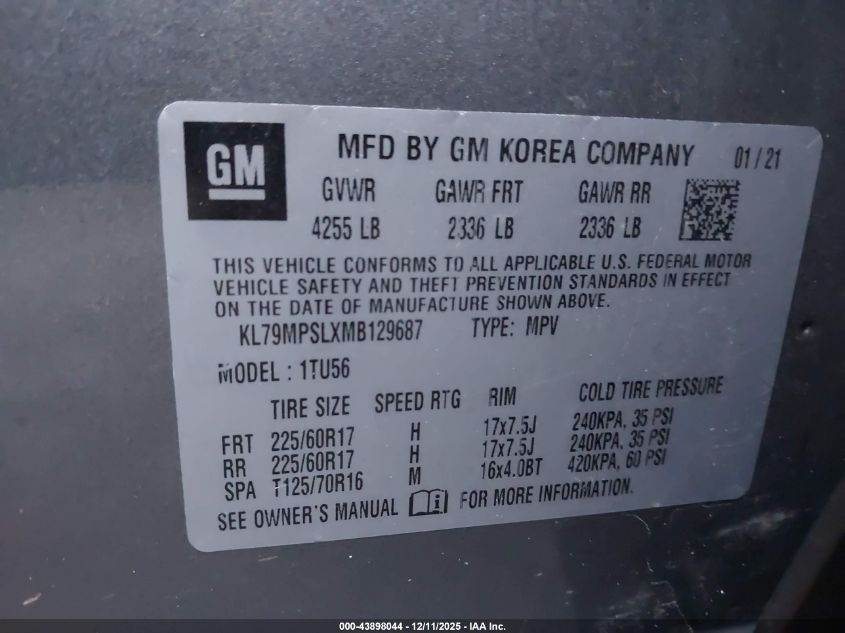 2021 CHEVROLET TRAILBLAZER - KL79MPSLXMB129687, колір - Сірий, 1.3, Бензин, Передній привід із США