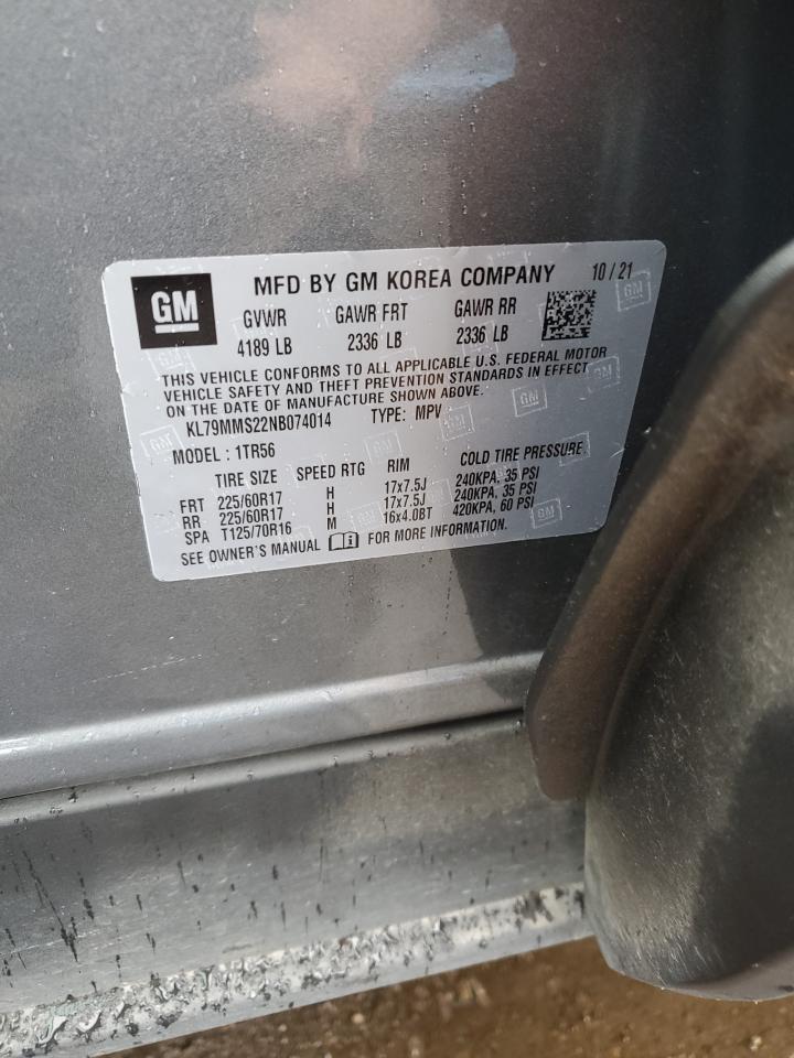 2022 CHEVROLET TRAILBLAZER - KL79MMS22NB074014, колір - Синій, 1.2, Бензин, із США