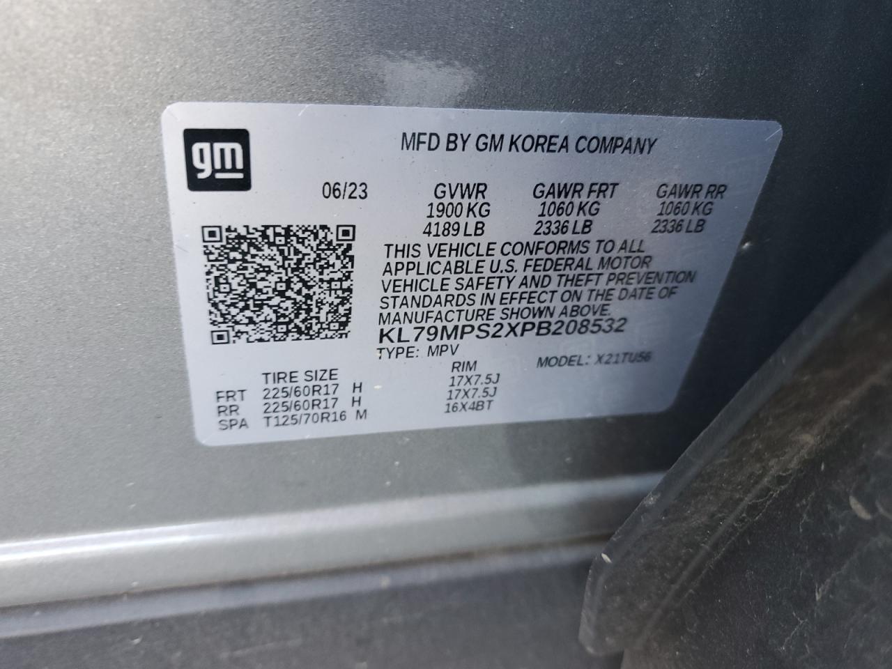 2023 CHEVROLET TRAILBLAZER - KL79MPS2XPB208532, колір - Срібний, 1.2, Бензин, із США