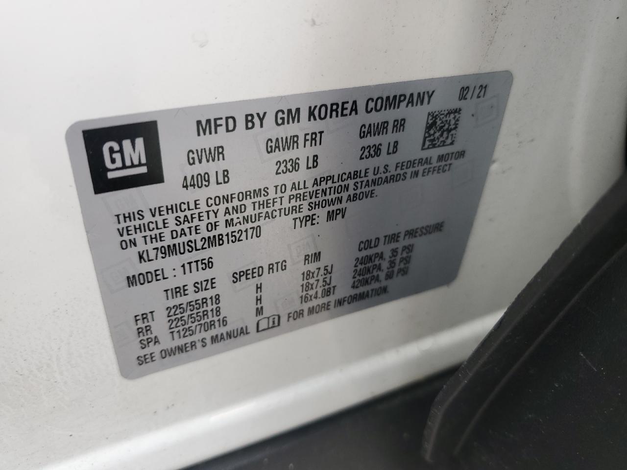 2021 CHEVROLET TRAILBLAZER - KL79MUSL2MB152170, колір - Білий, 1.3, Бензин, Повний привід із США