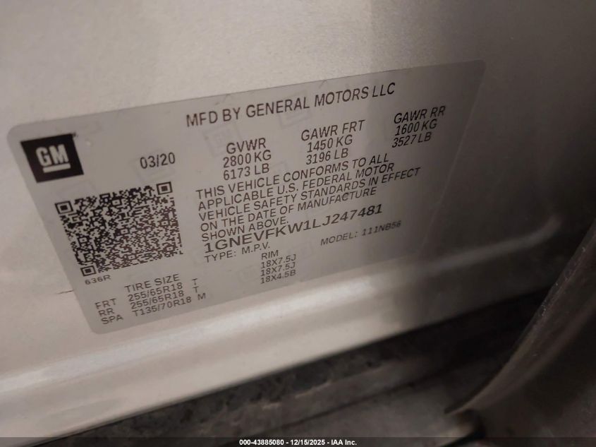 2020 CHEVROLET TRAVERSE LT