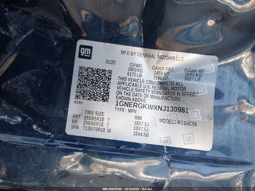 Колір СинійЦиліндри 6Привід Передній привідVIN 1GNERGKWXNJ130981Стан Заводиться та їде (перевірено)Ушкодження Ліва сторона