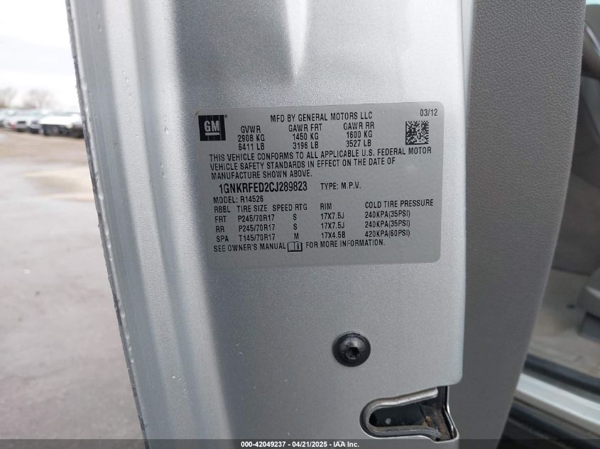 2012 CHEVROLET TRAVERSE - 1GNKRFED2CJ289823, колір - Срібний, 3.6, Бензин, Передній привід із США