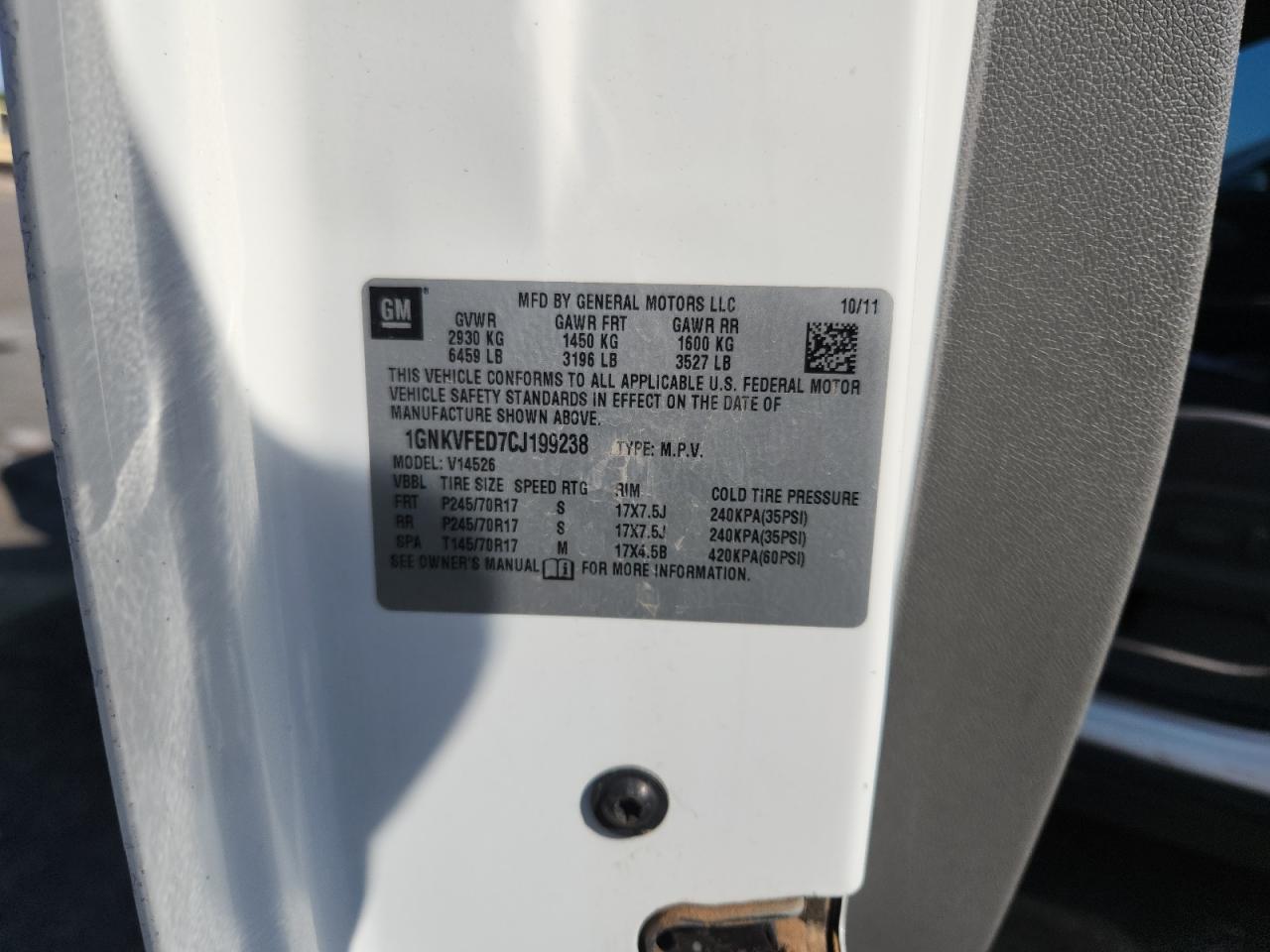 2012 CHEVROLET TRAVERSE - 1GNKVFED7CJ199238, колір - Білий, 3.6, Бензин, Повний привід із США