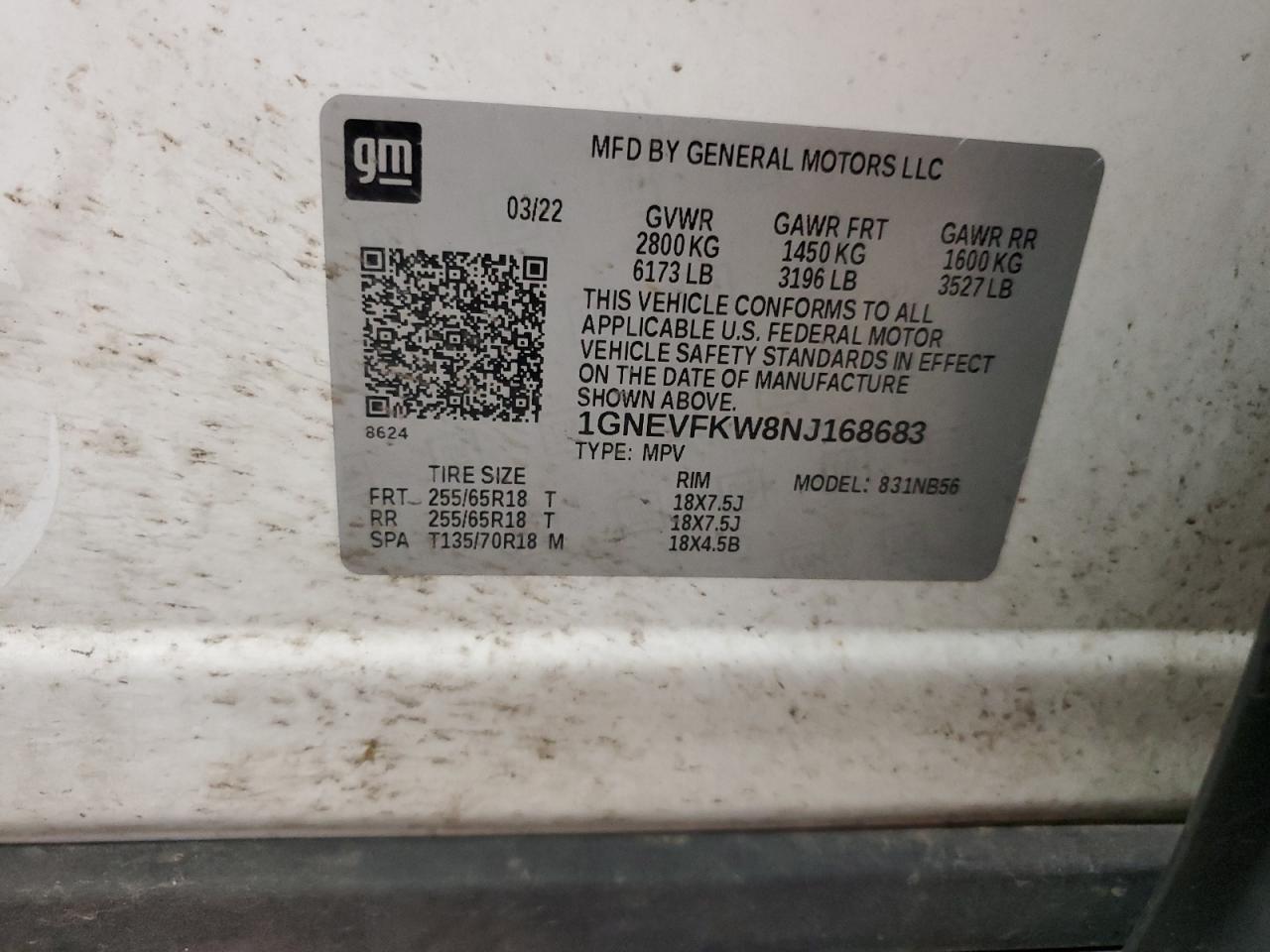 2022 CHEVROLET TRAVERSE - 1GNEVFKW8NJ168683, колір - Білий, 3.6, Бензин, Повний привід із США