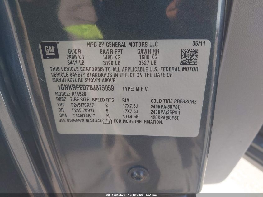 2011 CHEVROLET TRAVERSE - 1GNKRFED7BJ375059, колір - Чорний, 3.6, Бензин, Передній привід із США