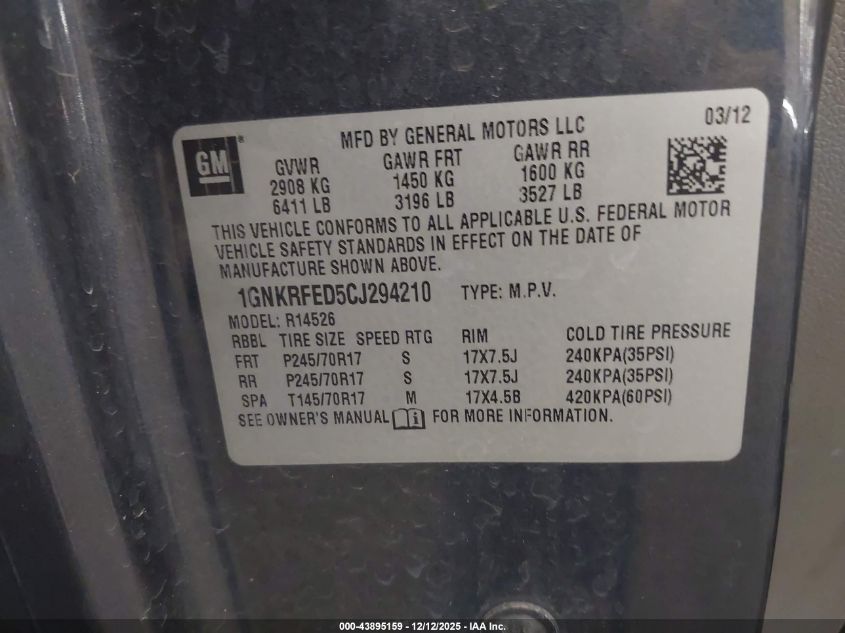 Колір СірийЦиліндри 6Привід Передній привідVIN 1GNKRFED5CJ294210Стан СтаціонарноУшкодження Невідомо