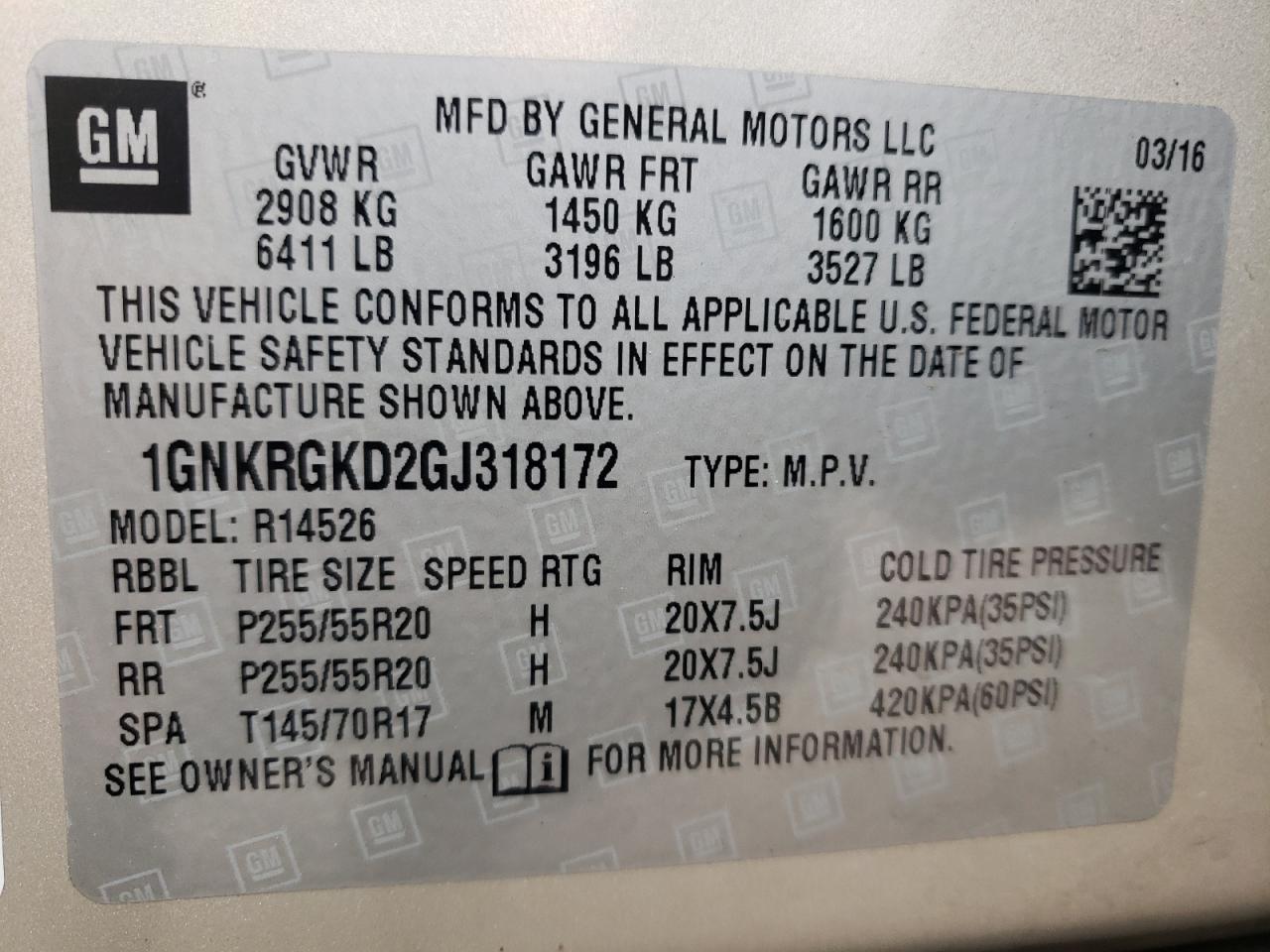 2016 CHEVROLET TRAVERSE - 1GNKRGKD2GJ318172, колір - Кремовий, 3.6, Бензин, із США