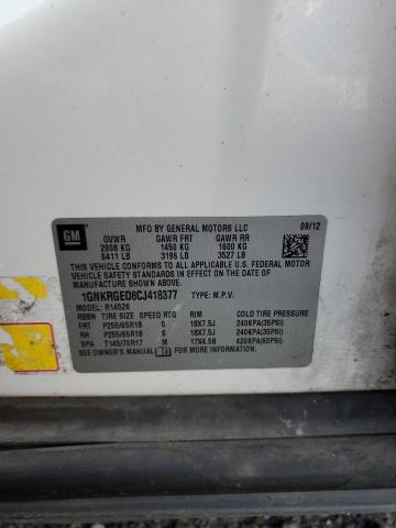2012 CHEVROLET TRAVERSE - 1GNKRGED8CJ418377, колір - Білий, 3.6, Бензин, із США