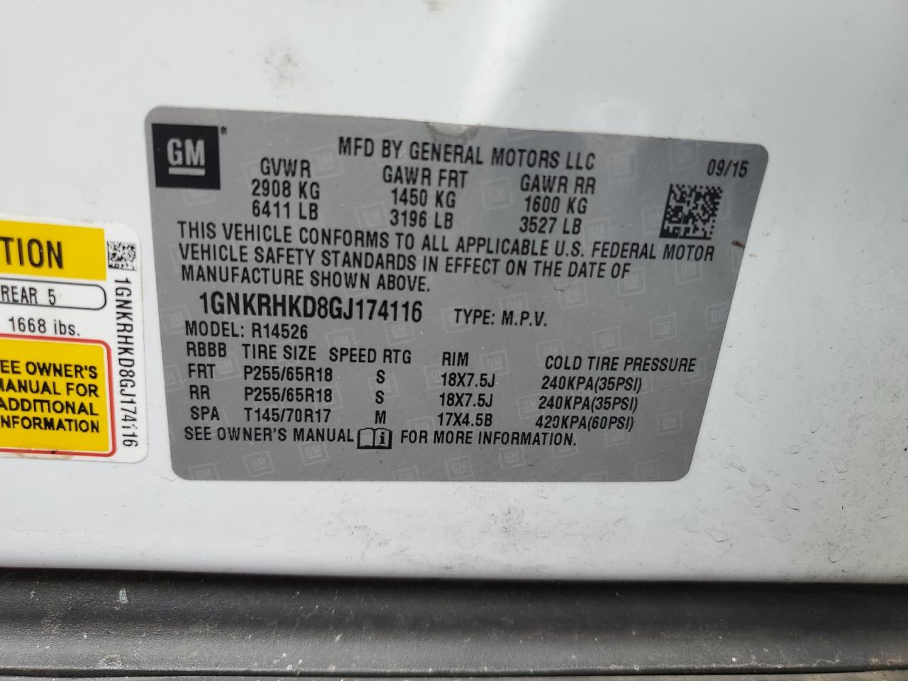 Колір БілийЦиліндри 6VIN 1GNKRHKD8GJ174116Стан Заводиться та їде (перевірено)Ушкодження Передня або задня
