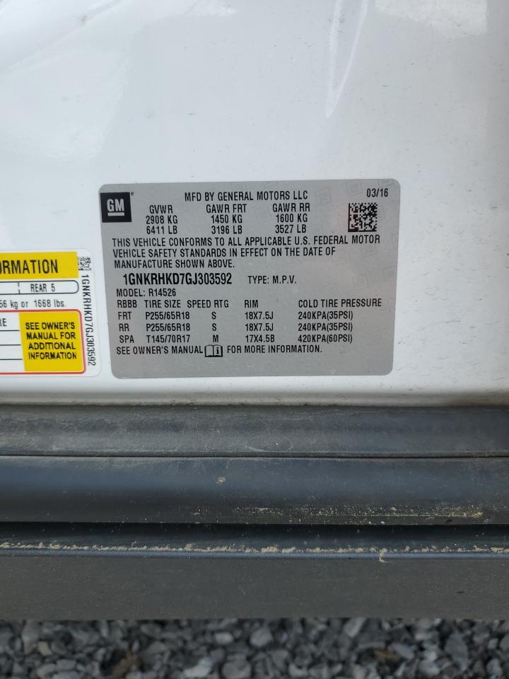 2016 CHEVROLET TRAVERSE - 1GNKRHKD7GJ303592, колір - Білий, 3.6, Бензин, із США