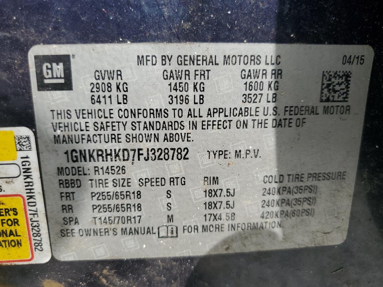 2015 CHEVROLET TRAVERSE - 1GNKRHKD7FJ328782, колір - Синій, 3.6, Бензин, із США