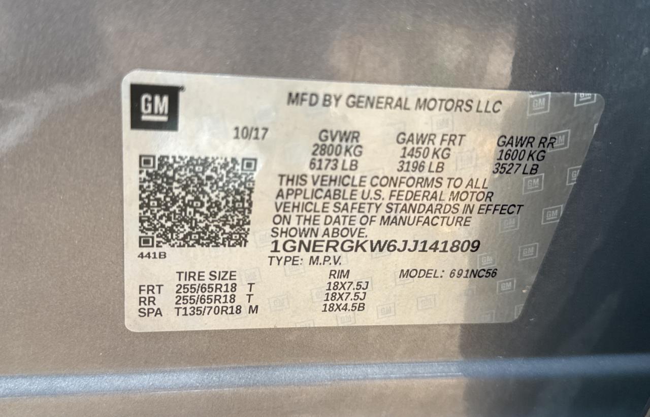 Колір СірийЦиліндри 6VIN 1GNERGKW6JJ141809Стан Заводиться та їде (перевірено)Ушкодження НезначніДата аукціона 2025-10-09