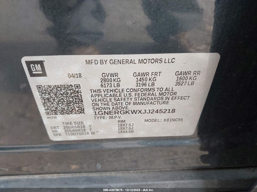 2018 CHEVROLET TRAVERSE - 1GNERGKWXJJ245218, колір - Чорний, 3.6, Бензин, Передній привід із США