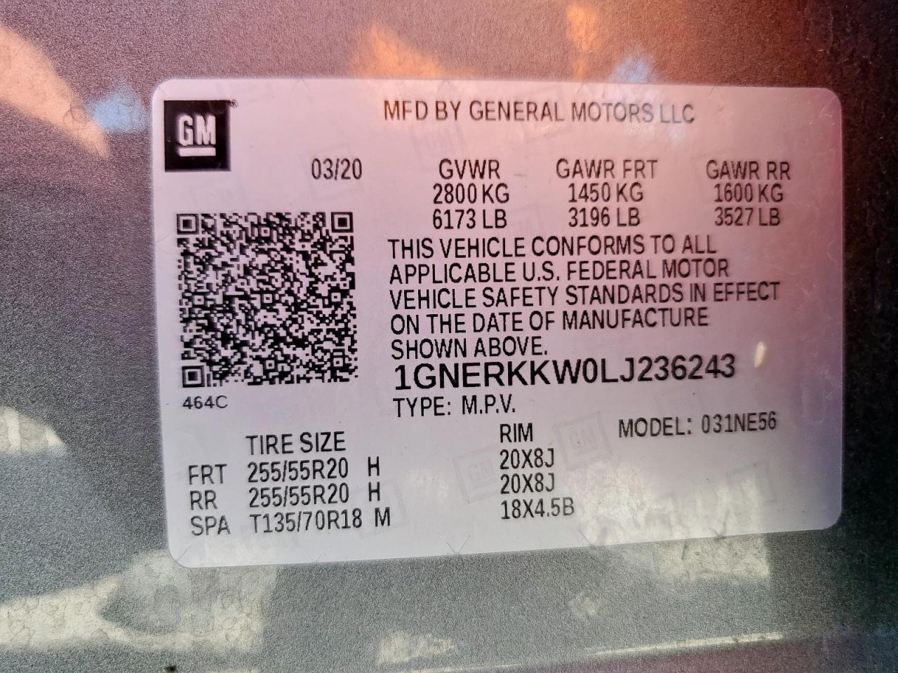 2020 CHEVROLET TRAVERSE - 1GNERKKW0LJ236243, колір - Сірий, 3.6, Бензин, із США