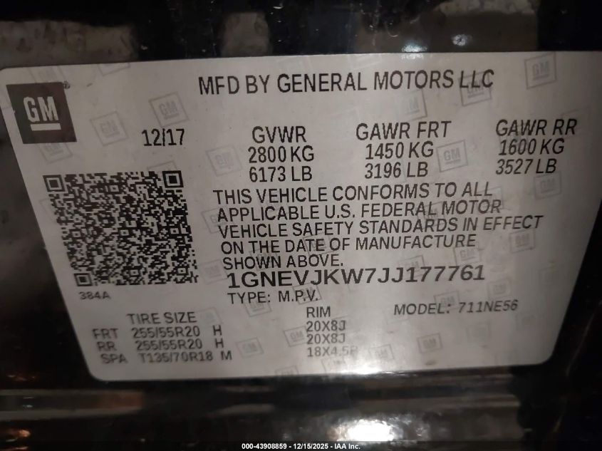 Колір ЧорнийЦиліндри 6Привід Повний привідVIN 1GNEVJKW7JJ177761Стан Заводиться та їде (перевірено)Ушкодження Передня або задня