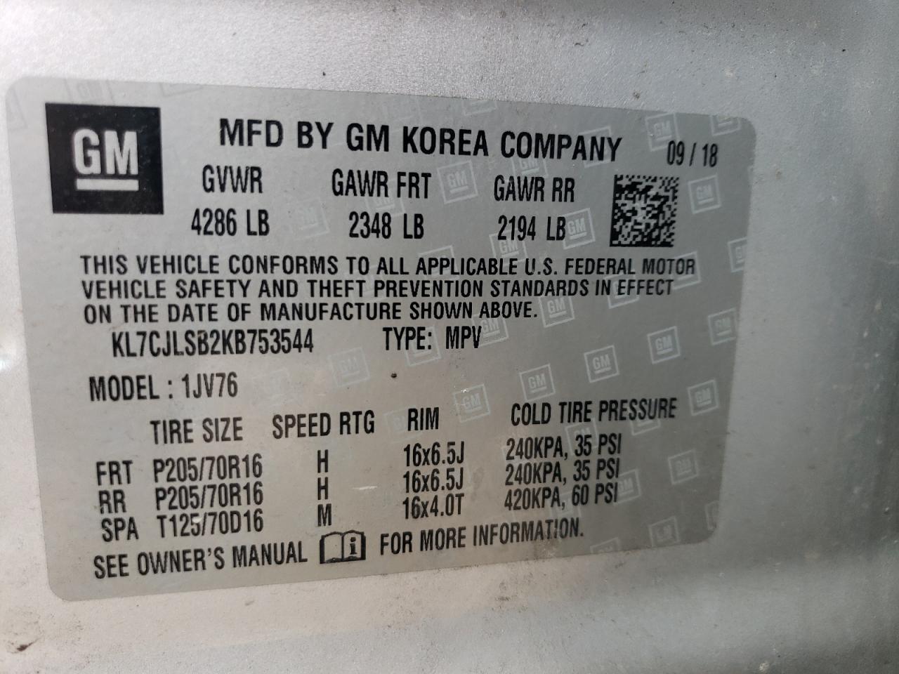 2019 CHEVROLET TRAX - KL7CJLSB2KB753544, колір - Срібний, 1.4, Бензин, із США