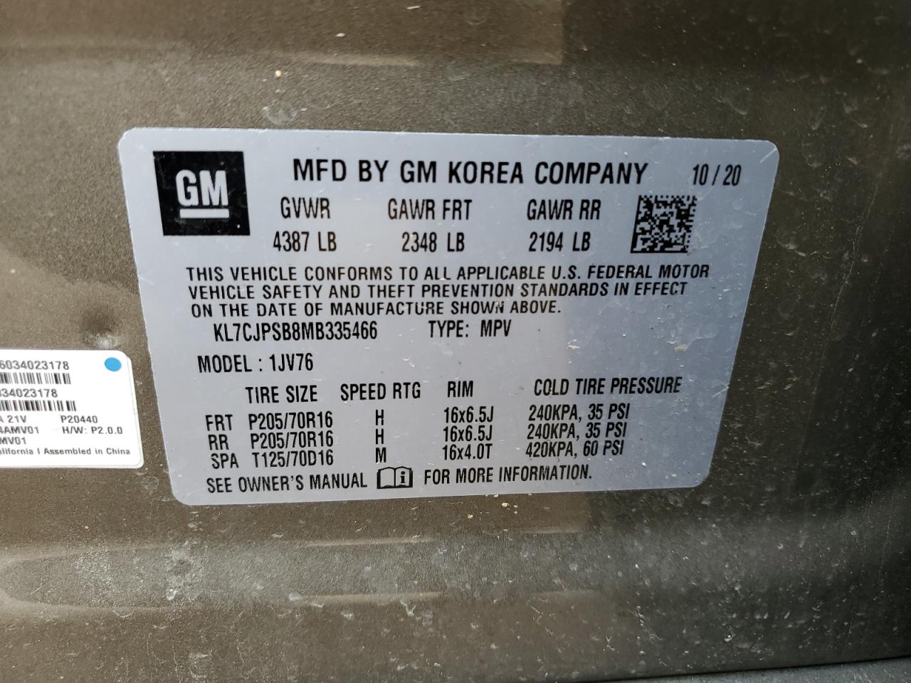 2021 CHEVROLET TRAX - KL7CJPSB8MB335466, колір - Коричневий, 1.4, Бензин, Повний привід із США