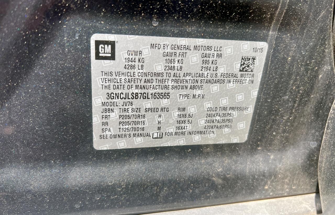 Колір СірийЦиліндри 4VIN 3GNCJLSB7GL163565Стан Заводиться та їде (перевірено)Ушкодження НезначніДата аукціона 2025-10-08