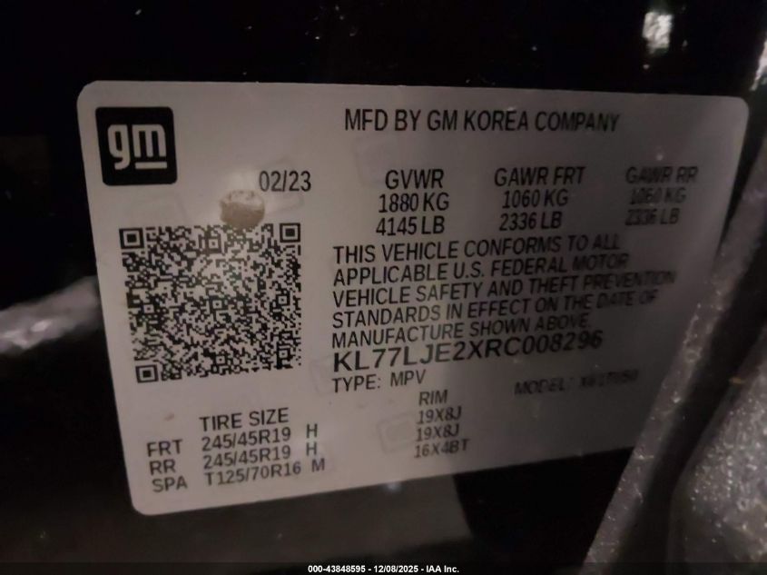 2024 CHEVROLET TRAX - KL77LJE2XRC008296, колір - Чорний, 1.2, Бензин, Передній привід із США
