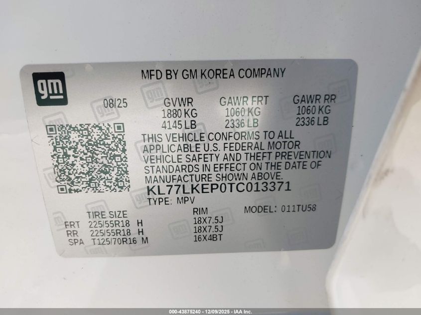 2026 CHEVROLET TRAX - KL77LKEP0TC013371, колір - Білий, 1.2, Бензин, Передній привід із США