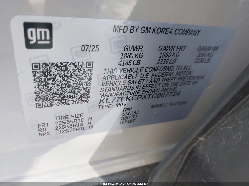 2026 CHEVROLET TRAX - KL77LKEPXTC007724, колір - Білий, 1.2, Бензин, Передній привід із США