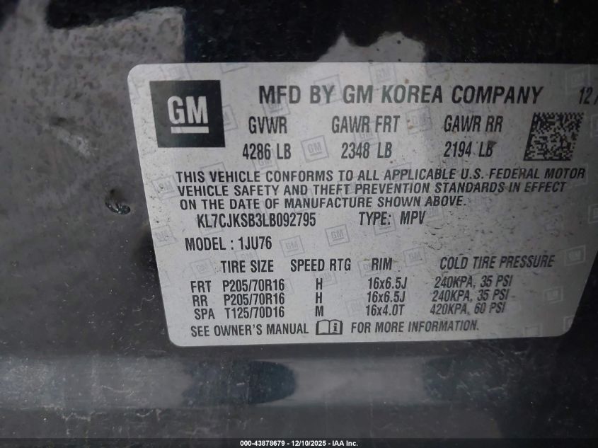 2020 CHEVROLET TRAX - KL7CJKSB3LB092795, колір - Чорний, 1.4, Бензин, Передній привід із США