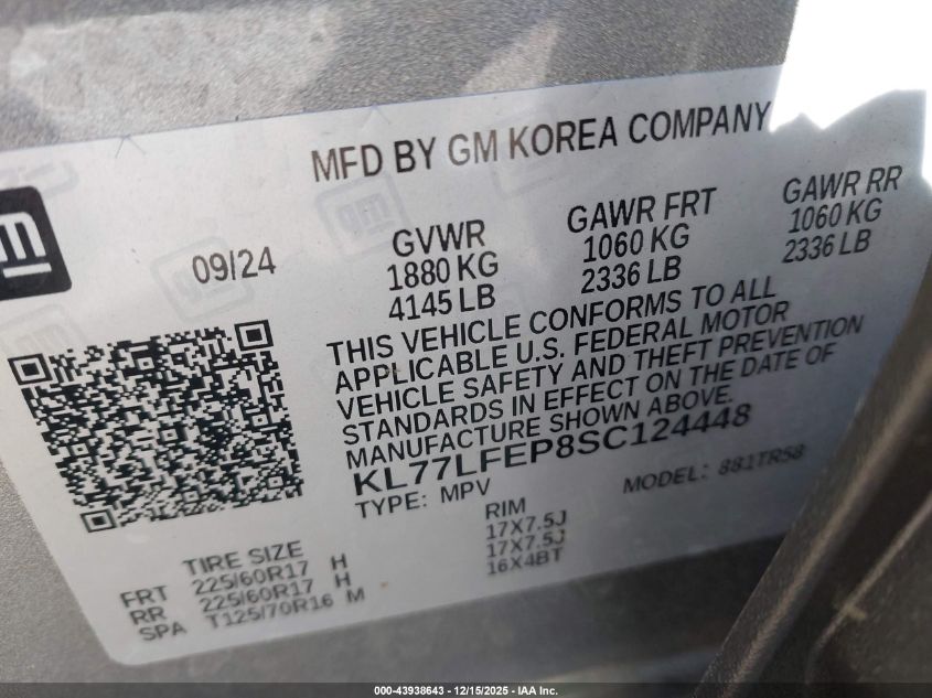 2025 CHEVROLET TRAX - KL77LFEP8SC124448, колір - Сірий, 1.2, Бензин, Передній привід із США