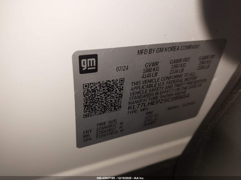 2025 CHEVROLET TRAX - KL77LHEP2SC095654, колір - Білий, 1.2, Бензин, Передній привід із США