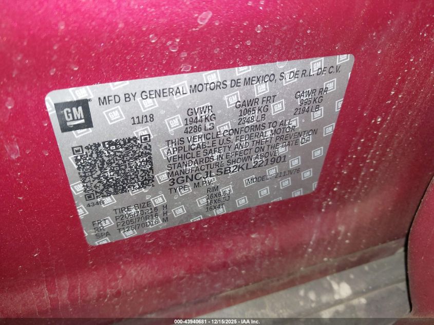 2019 CHEVROLET TRAX - 3GNCJLSB2KL221901, колір - Червоний, 1.4, Бензин, Передній привід із США