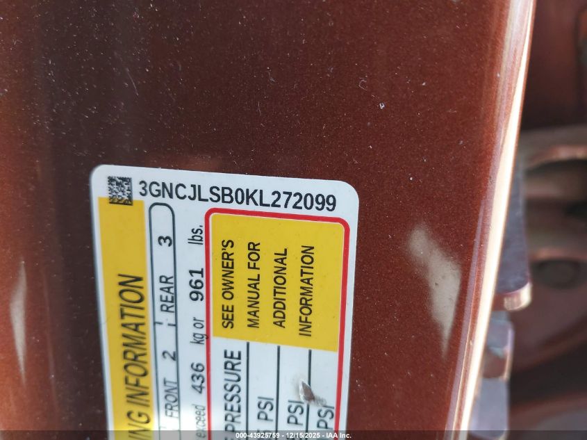 2019 CHEVROLET TRAX - 3GNCJLSB0KL272099, колір - Апельсиновий, 1.4, Бензин, Передній привід із США