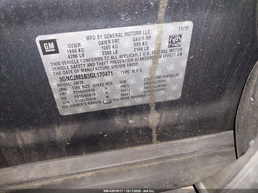 2016 CHEVROLET TRAX - 3GNCJMSB3GL170471, колір - Сірий, 1.4, Бензин, Передній привід із США