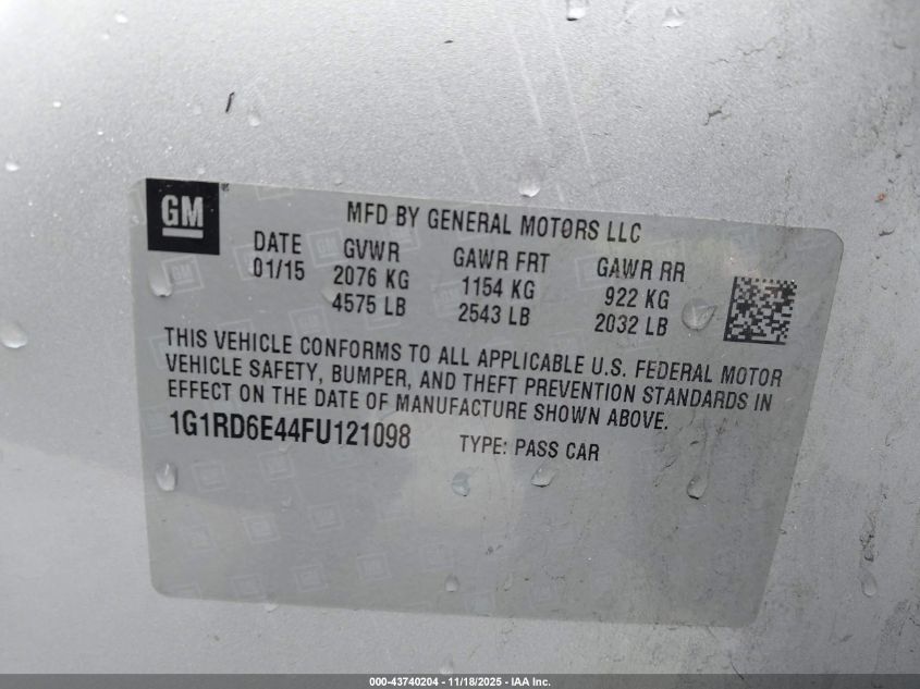 2015 CHEVROLET VOLT - 1G1RD6E44FU121098, колір - Срібний, 1.4, Гібрид, Передній привід із США