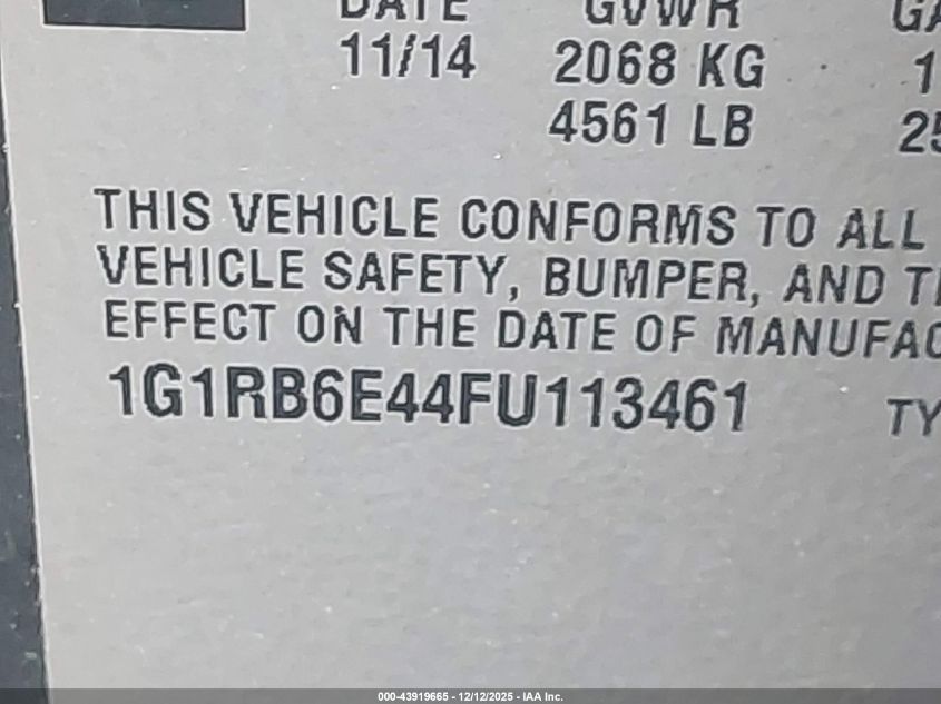 Колір ЧорнийЦиліндри 4Привід Передній привідVIN 1G1RB6E44FU113461Стан Заводиться та їде (перевірено)Ушкодження Задня ліваДата аукціона 2025-12-19
