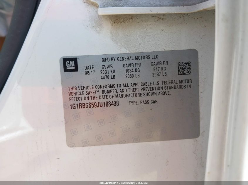 2018 CHEVROLET VOLT - 1G1RB6S59JU108438, колір - Білий, 1.5, Гібрид, Передній привід із США