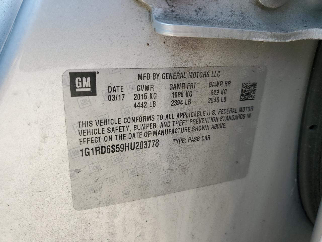 2017 CHEVROLET VOLT - 1G1RD6S59HU203778, колір - Срібний, 1.5, Гібрид, із США