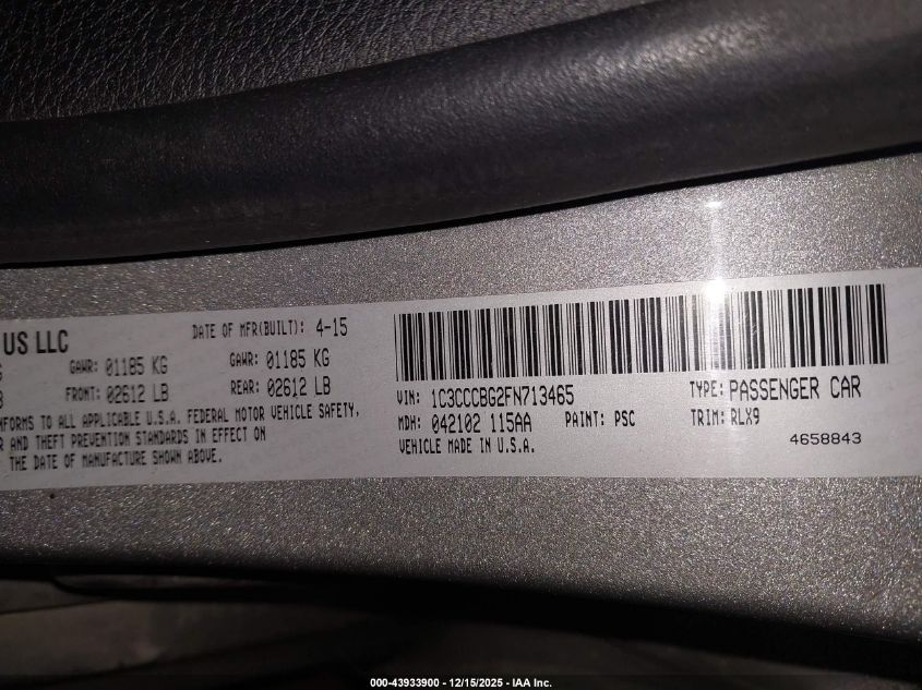Колір СірийЦиліндри 6Привід Передній привідVIN 1C3CCCBG2FN713465Стан СтаціонарноУшкодження Перекидання