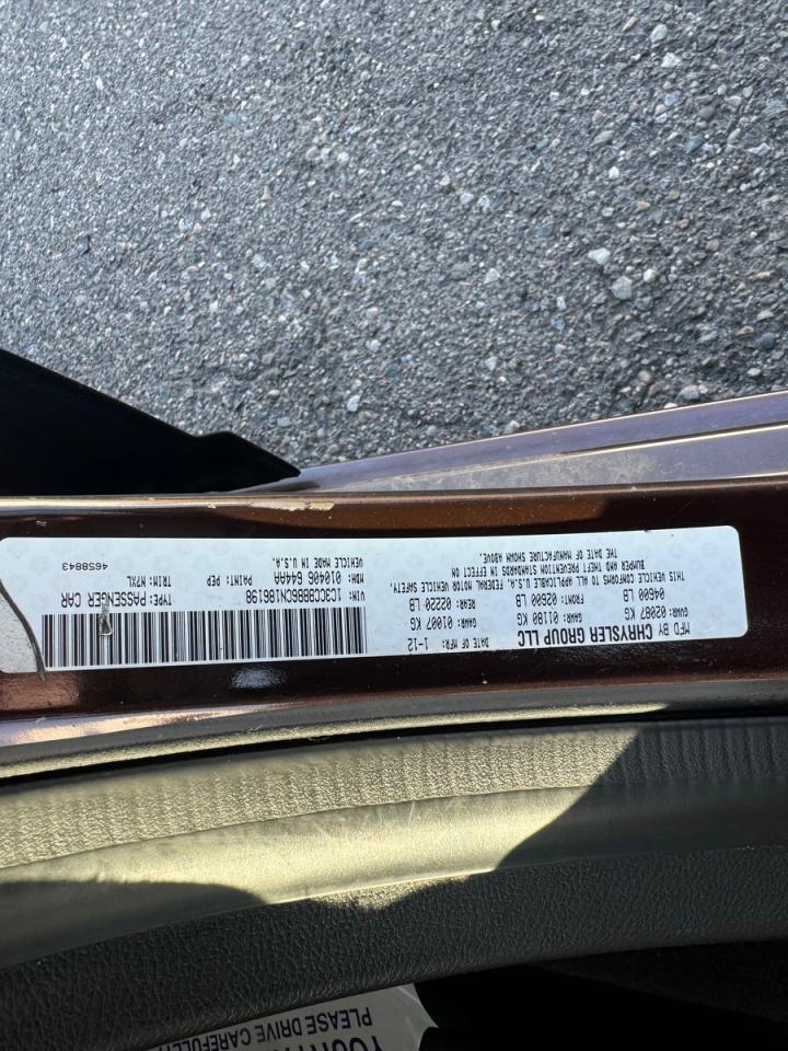 Колір КоричневийЦиліндри 4VIN 1C3CCBBB6CN186198Стан Заводиться та їде (перевірено)Ушкодження НезначніДата аукціона 2025-10-10