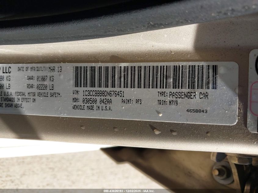 Колір ЗолотийЦиліндри 4Привід Передній привідVIN 1C3CCBBB8DN676451Стан Заводиться та їде (перевірено)Ушкодження Передня права