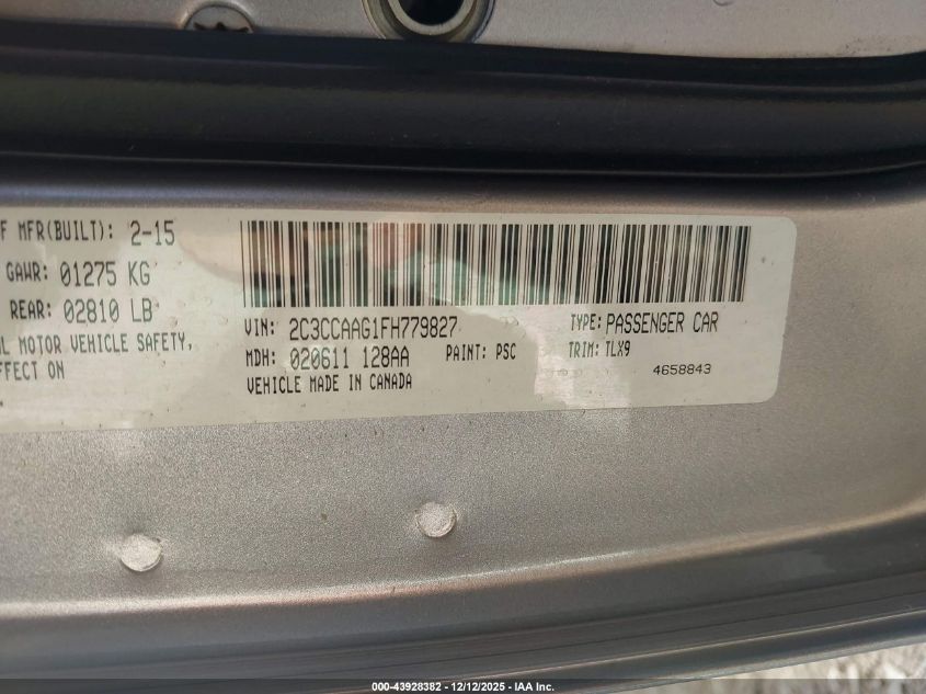 Колір СірийЦиліндри 6Привід Задній привідVIN 2C3CCAAG1FH779827Стан СтаціонарноУшкодження Передня або задня