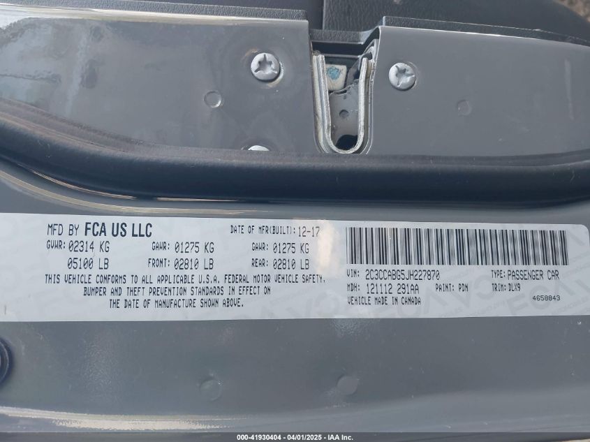 Колір СірийЦиліндри 6Привід Задній привідVIN 2C3CCABG5JH227870Стан Заводиться та їде (перевірено)Ушкодження Передня або задняДата аукціона 2025-10-08