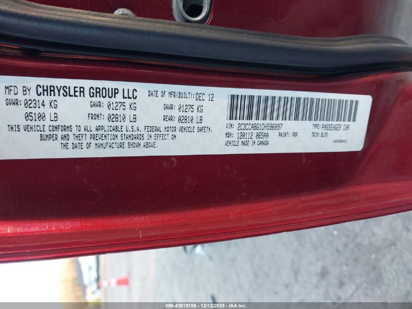 Колір ЧервонийЦиліндри 6Привід Задній привідVIN 2C3CCABG1DH596097Стан Заводиться та їде (перевірено)Ушкодження Передня або задня
