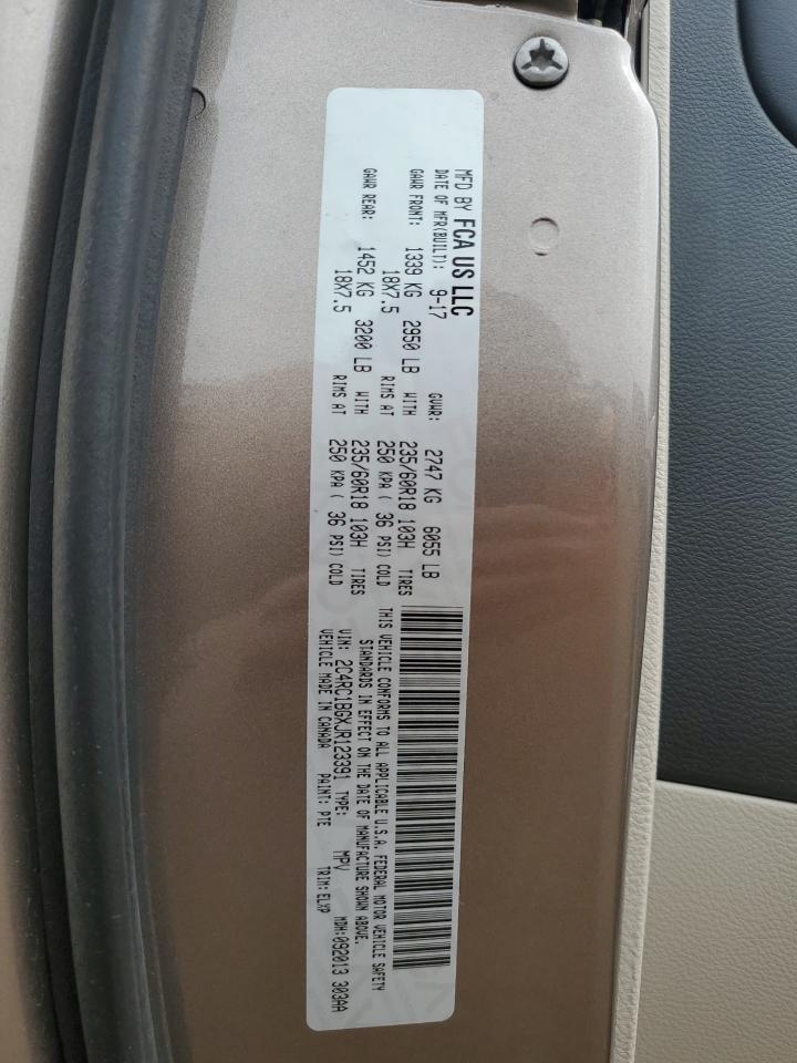 2018 CHRYSLER PACIFICA - 2C4RC1BGXJR123391, колір - Загар, 3.6, Бензин, із США