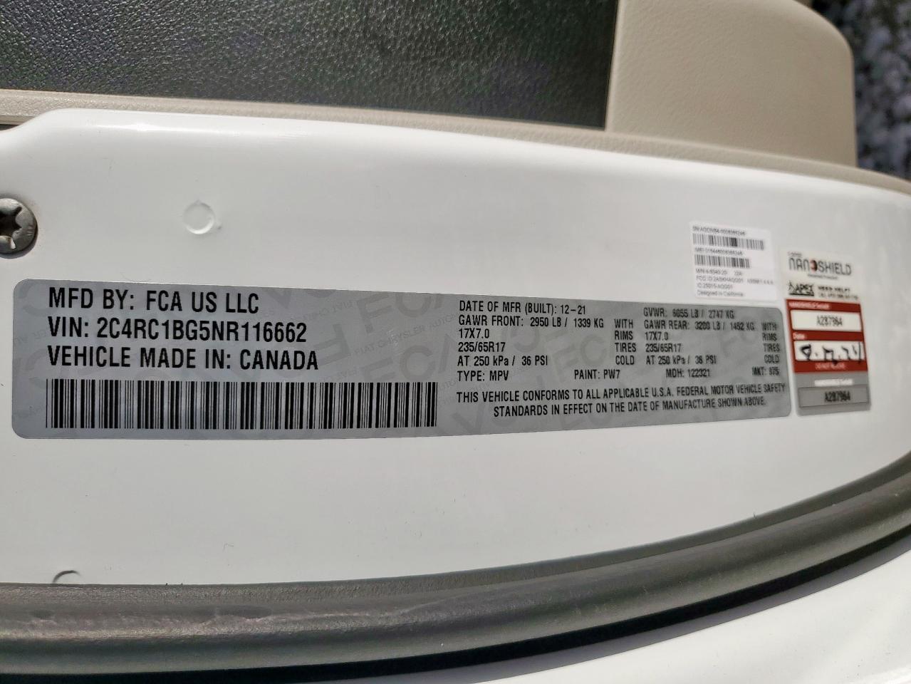 2022 CHRYSLER PACIFICA - 2C4RC1BG5NR116662, колір - Білий, 3.6, Бензин, із США