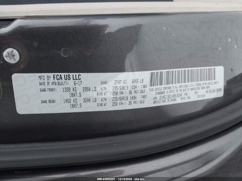 2017 CHRYSLER PACIFICA TOURING L PLUS