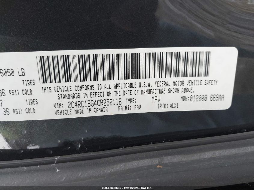 Колір ЧорнийЦиліндри 6Привід Передній привідVIN 2C4RC1BG4CR252116Стан Заводиться та їде (перевірено)Ушкодження Передня або задня